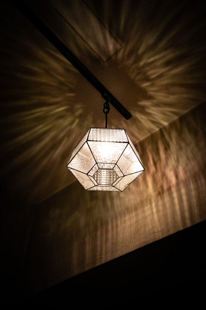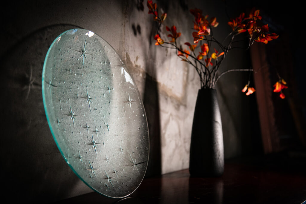つい見入ってしまうような奥行きや、光を受けて揺らぐ影。古いガラスの持つ美しさを、そのまま新しい形にとどめたいと思っています。